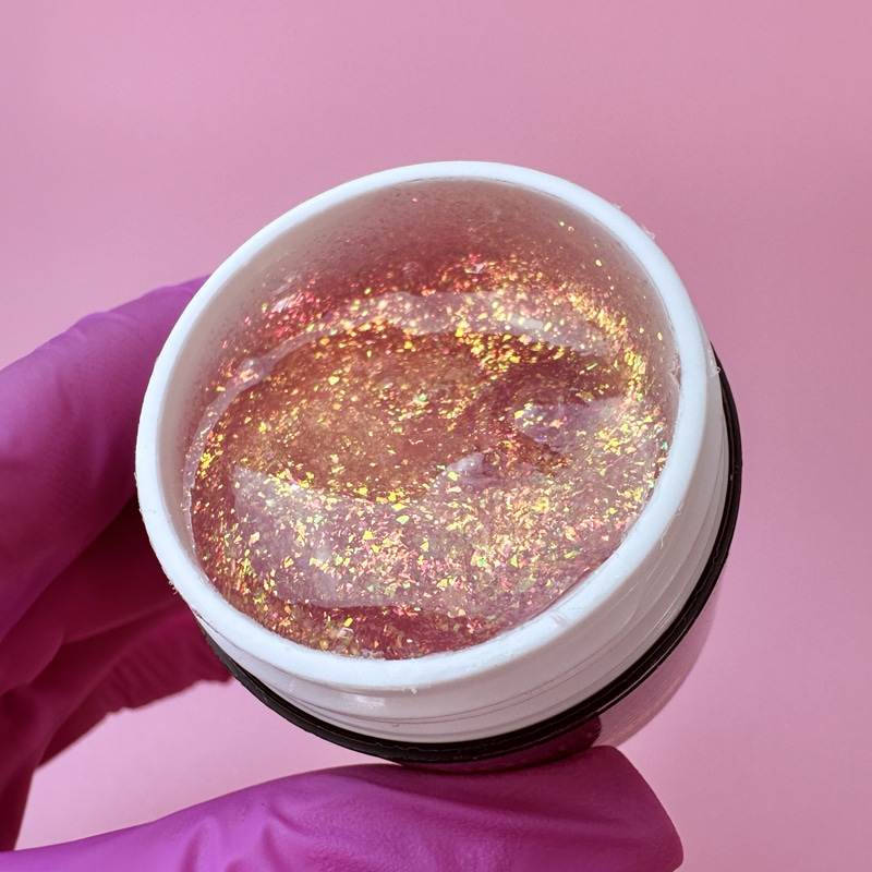 Chameleon Gel er en effektgel med en unik farveskiftende effekt, der ændrer nuance afhængigt af lys og betragtningsvinkel. Den specielle pigmentering giver neglene et spændende og dynamisk look, hvor farverne skifter og reflekterer lyset på en smuk måde.